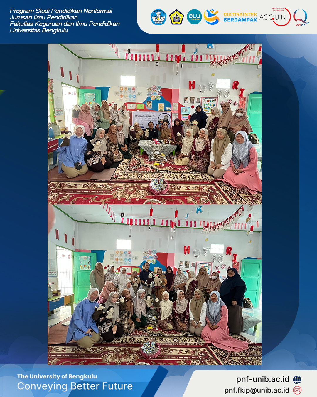 Kegiatan ini juga sejalan dengan misi UNIB dalam mengembangkan potensi masyarakat sekitar kampus, khususnya dalam bidang pendidikan anak usia dini yang berbasis budaya lokal.