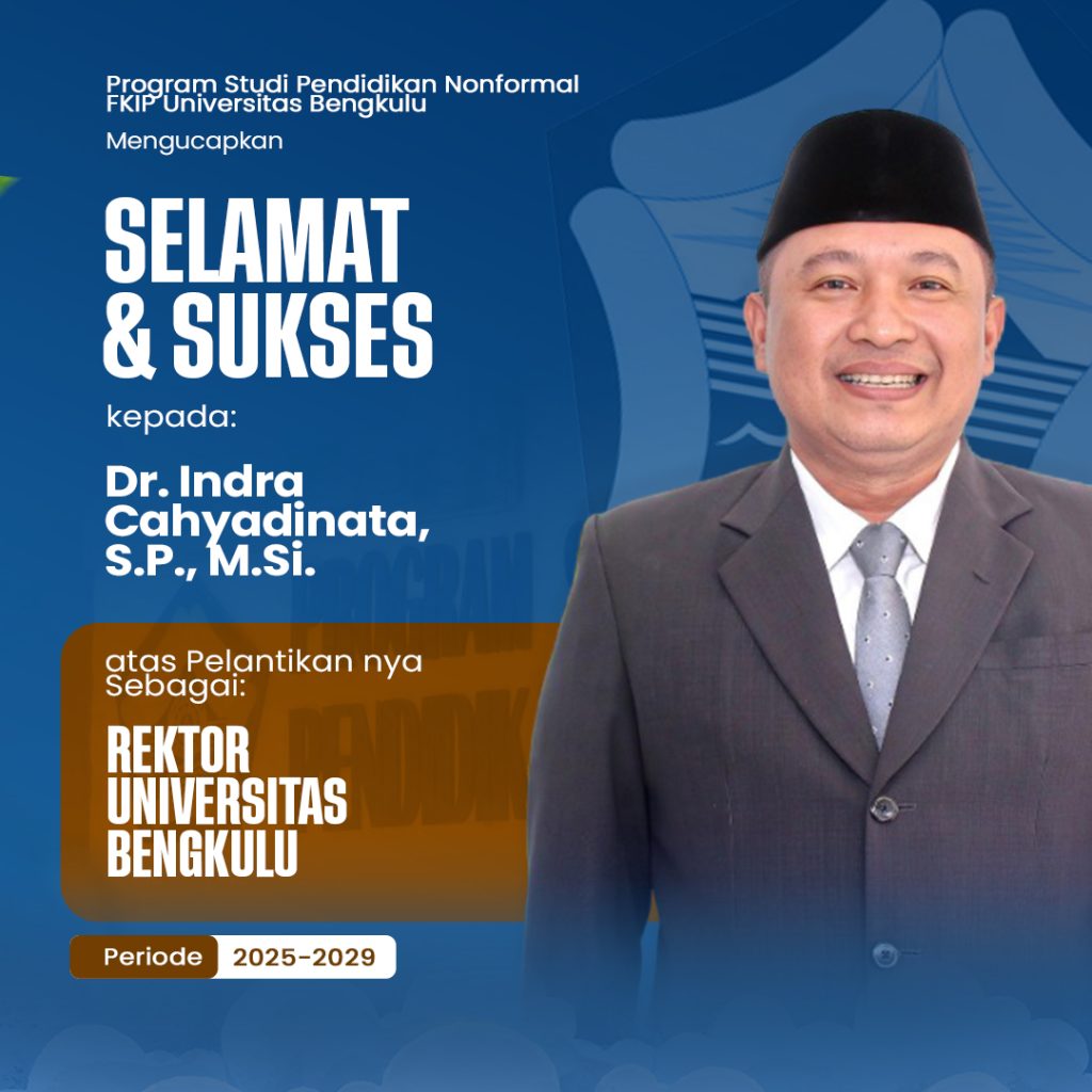 Program Studi Pendidikan Nonformal, Fakultas Keguruan dan Ilmu Pendidikan Universitas Bengkulu, turut mengucapkan selamat dan sukses atas amanah besar yang diterima beliau. Harapannya, di bawah kepemimpinan Rektor yang baru, Universitas Bengkulu semakin berdaya saing, unggul, serta memberikan kontribusi nyata bagi pembangunan bangsa dan daerah.