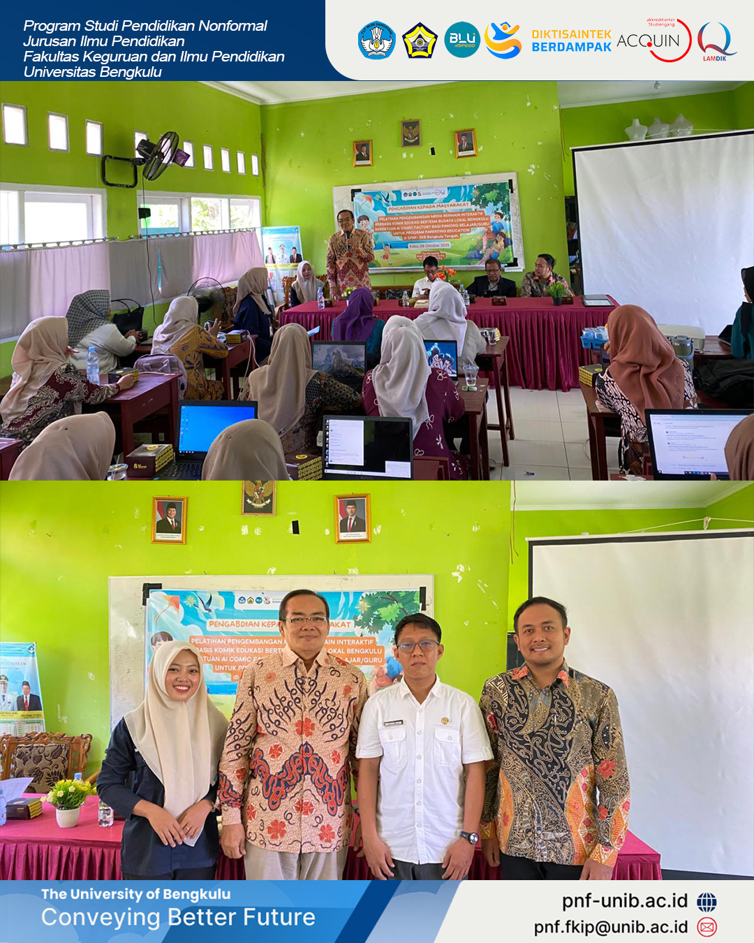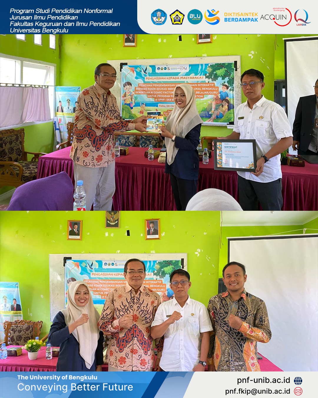 Bengkulu Tengah, 8 Oktober 2025 — Tim dosen dari Fakultas Keguruan dan Ilmu Pendidikan Universitas Bengkulu melaksanakan kegiatan Pengabdian kepada Masyarakat bertajuk “Pelatihan Pengembangan Media Bermain Interaktif Berbasis Komik Edukasi Bertema Budaya Lokal Bengkulu Berbantuan AI Comic Factory bagi Pamong Belajar/Guru untuk Program Parenting Education di SPNF-SKB Bengkulu Tengah.”