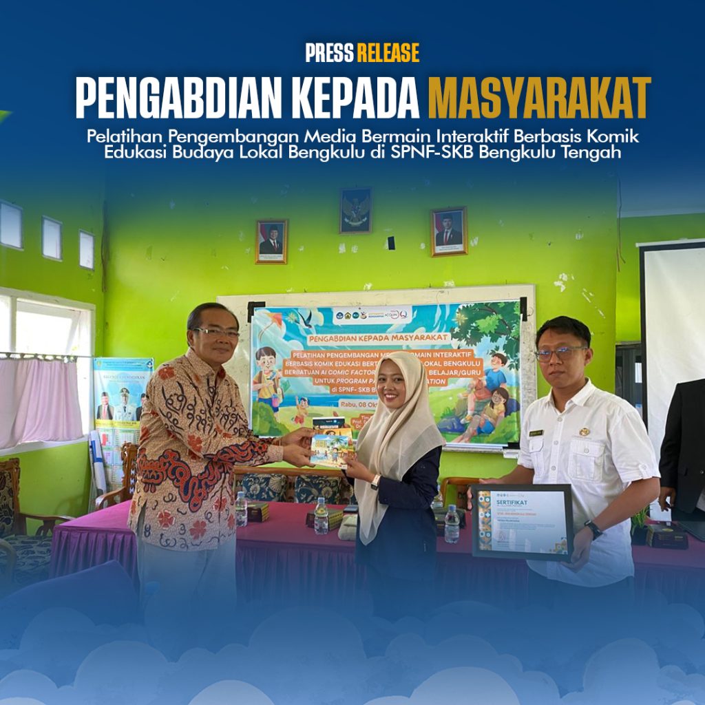 Bengkulu Tengah, 8 Oktober 2025 — Tim dosen dari Fakultas Keguruan dan Ilmu Pendidikan Universitas Bengkulu melaksanakan kegiatan Pengabdian kepada Masyarakat bertajuk “Pelatihan Pengembangan Media Bermain Interaktif Berbasis Komik Edukasi Bertema Budaya Lokal Bengkulu Berbantuan AI Comic Factory bagi Pamong Belajar/Guru untuk Program Parenting Education di SPNF-SKB Bengkulu Tengah.”