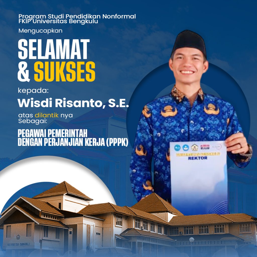 Bengkulu, Oktober 2025 — Program Studi Pendidikan Nonformal, Fakultas Keguruan dan Ilmu Pendidikan, Universitas Bengkulu menyampaikan ucapan selamat dan sukses kepada Wisdi Risanto, S.E., staf administrasi Prodi Pendidikan Nonformal FKIP UNIB, atas pelantikannya sebagai Pegawai Pemerintah dengan Perjanjian Kerja (PPPK).