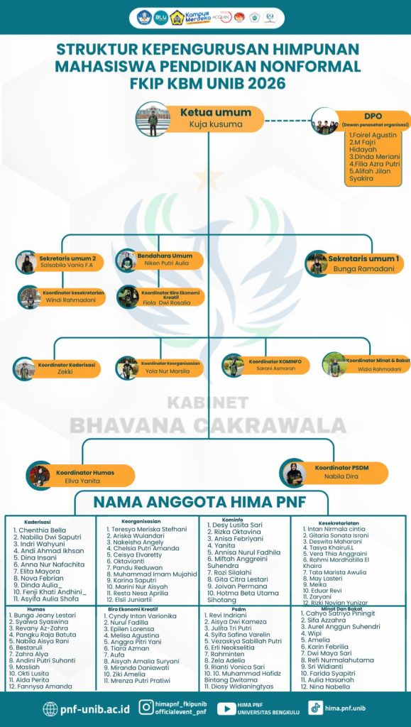 Program Studi S-1 Pendidikan Nonformal (PNF), Jurusan Ilmu Pendidikan, Fakultas Keguruan dan Ilmu Pendidikan (FKIP) Universitas Bengkulu menetapkan beberapa dosen untuk mengemban amanah dalam penguatan tata kelola program studi.
