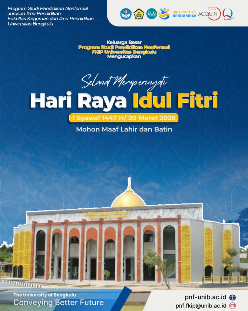Di era disrupsi dan transformasi sosial yang cepat seperti sekarang, dunia tidak hanya membutuhkan pendidik di dalam ruang kelas. Masyarakat membutuhkan fasilitator belajar, penggerak komunitas, inovator sosial, dan pengelola program pemberdayaan yang adaptif. Program Studi Pendidikan Nonformal (PNF) Fakultas Keguruan dan Ilmu Pendidikan (FKIP) Universitas Bengkulu hadir sebagai jawaban atas kebutuhan tersebut.